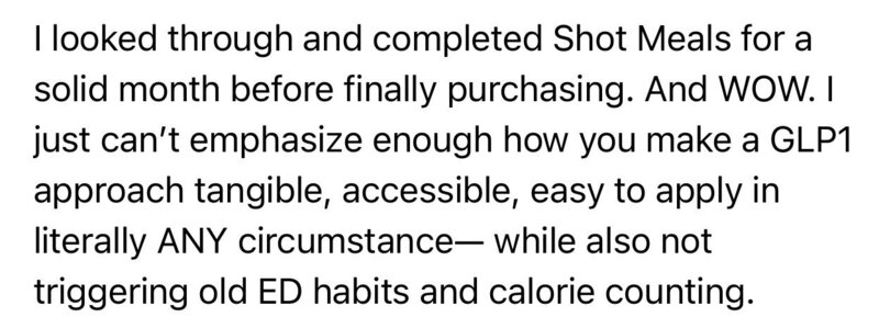 Shot Meals was made for people taking GLP-1 medications. So it addresses many of the challenges and experiences of those taking the medication. The information in the guide could potentially help you, but it’s tailored to those taking GLP-1.