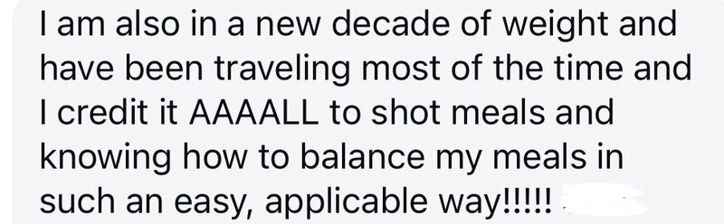 I recommend following the Shot Meals Method for 4 weeks before assessing your progress. On average, most people see results within 2-4 weeks of implementing the diet changes in Shot Meals. Please keep in mind, results are not guaranteed.